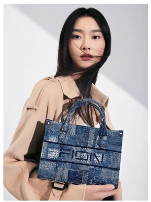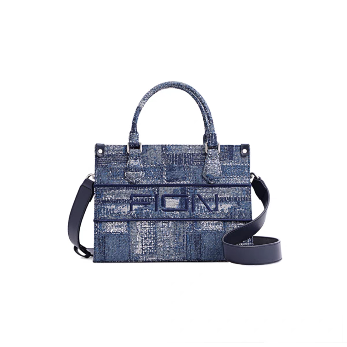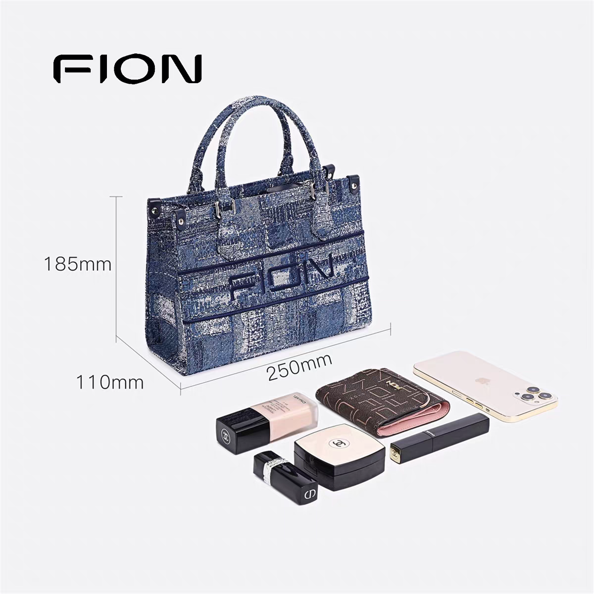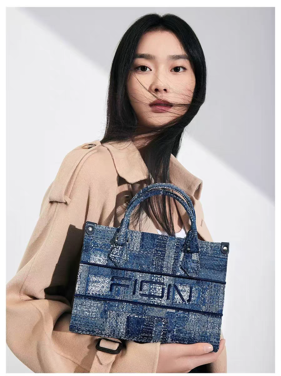 Fion/菲安妮 蓝色油画中号托特包通勤单肩斜跨手提包