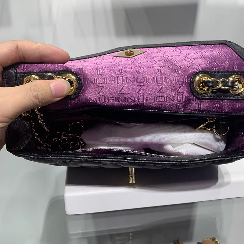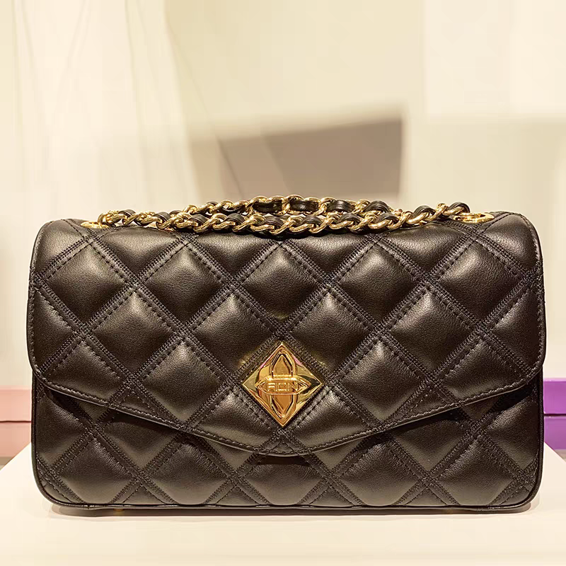Fion/菲安妮经典菱格牛皮单肩斜跨链条包
