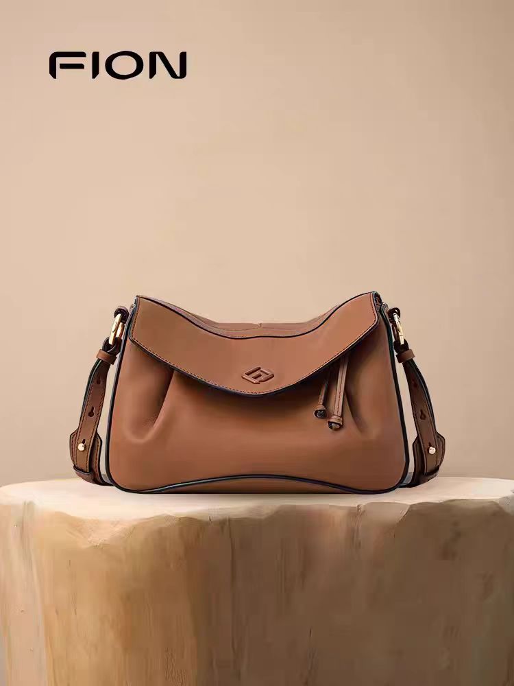 Fion/ 菲安妮牛皮时尚枕头包斜跨单肩包