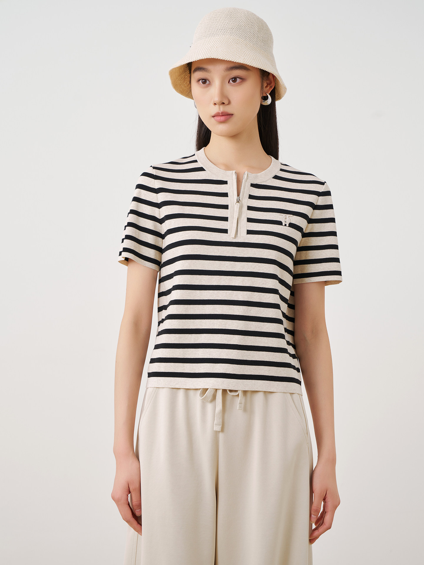 OTT短袖条纹针织衫