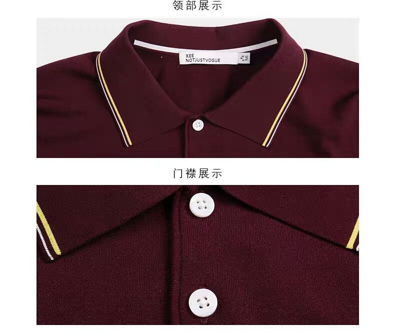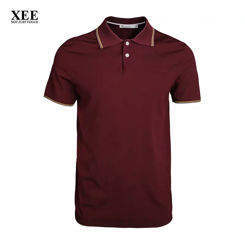 >>XEE商场同款商务休闲酒红色POIO衫纯色简约短袖T恤