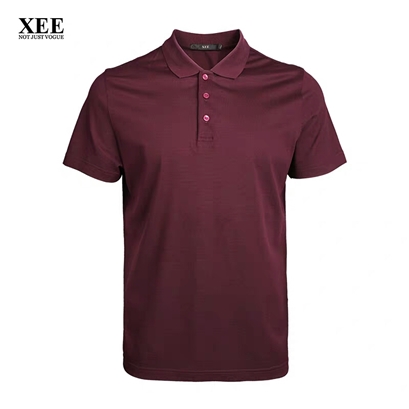 >>XEE商场同款男士桑蚕丝酒红色POIO衫丝滑简约纯色短袖