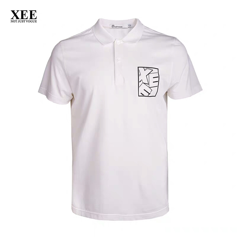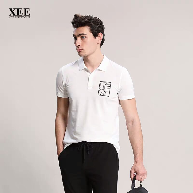 XEE商场同款都市欧美白色POIO衫百塔简约翻领短袖男T恤