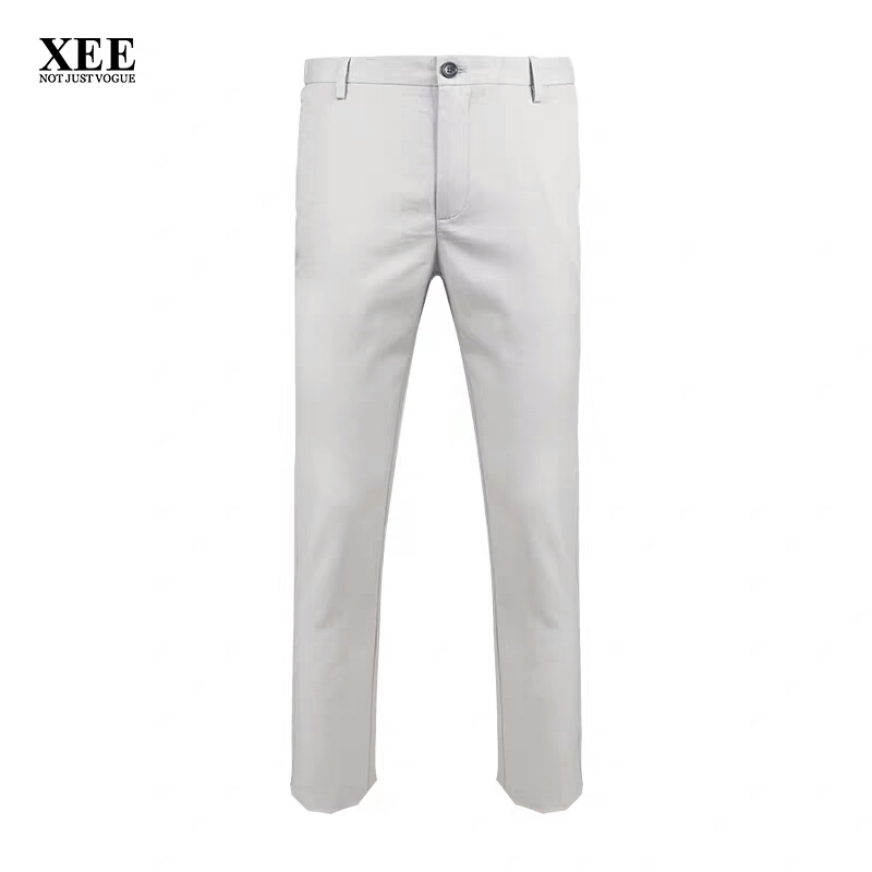 >>XEE商场同款浅灰色松紧裤腰商务休闲男裤简约合体薄长裤夏
