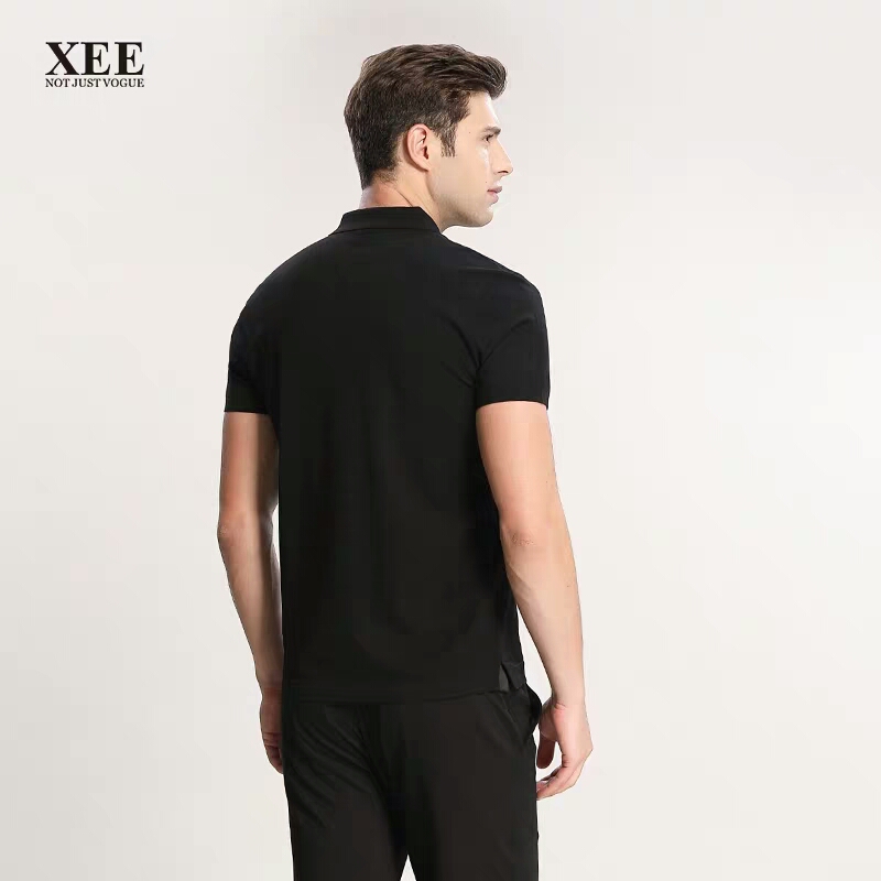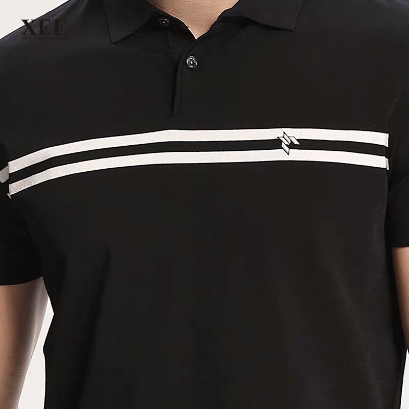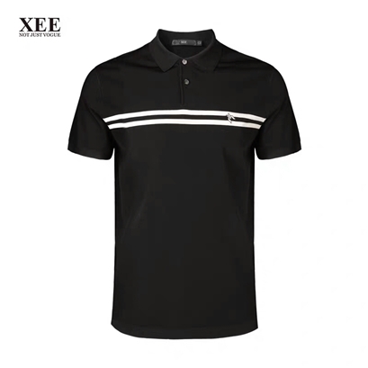 >>XEE商场同款黑色条纹简约翻领POIO衫