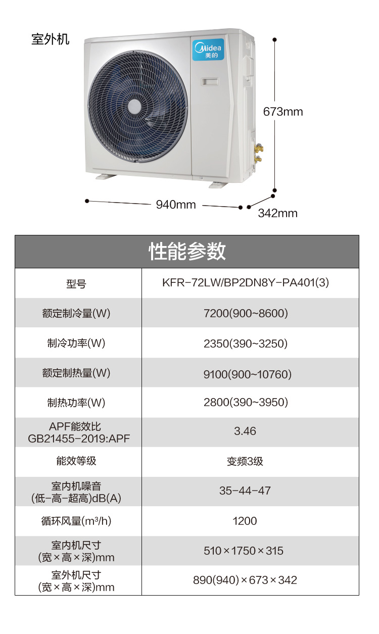 空调>>美的空调72LW/BP2DN8Y-PA401(3