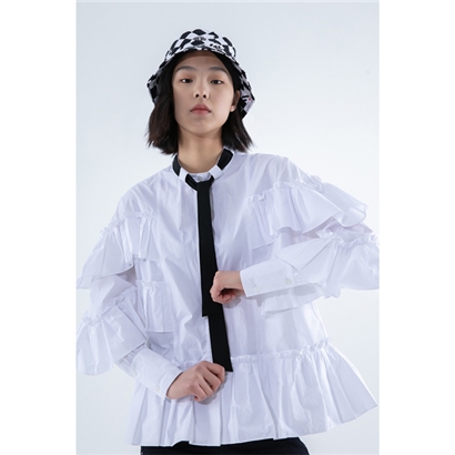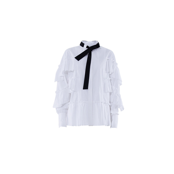>>玛丝菲尔素20秋白色宫廷风荷叶边白衬衫