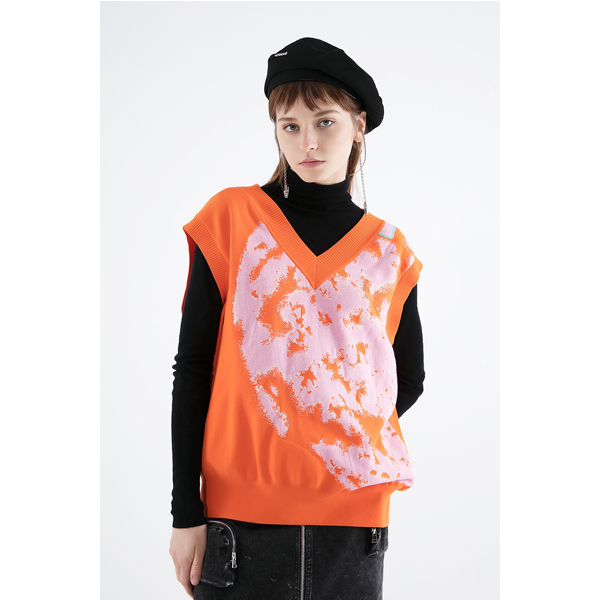 >>玛丝菲尔素20秋橘色针织背心吴昕同款