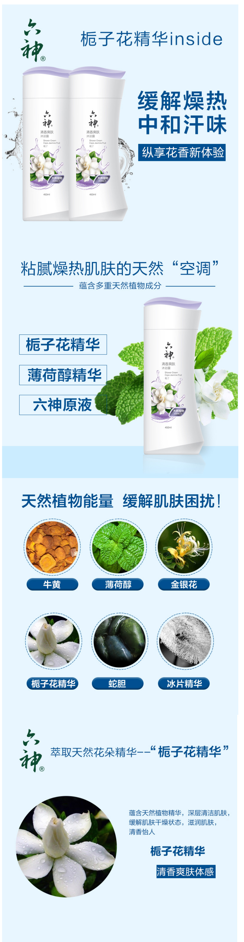 >>六神清香爽肤450ml沐浴露(栀子花香)