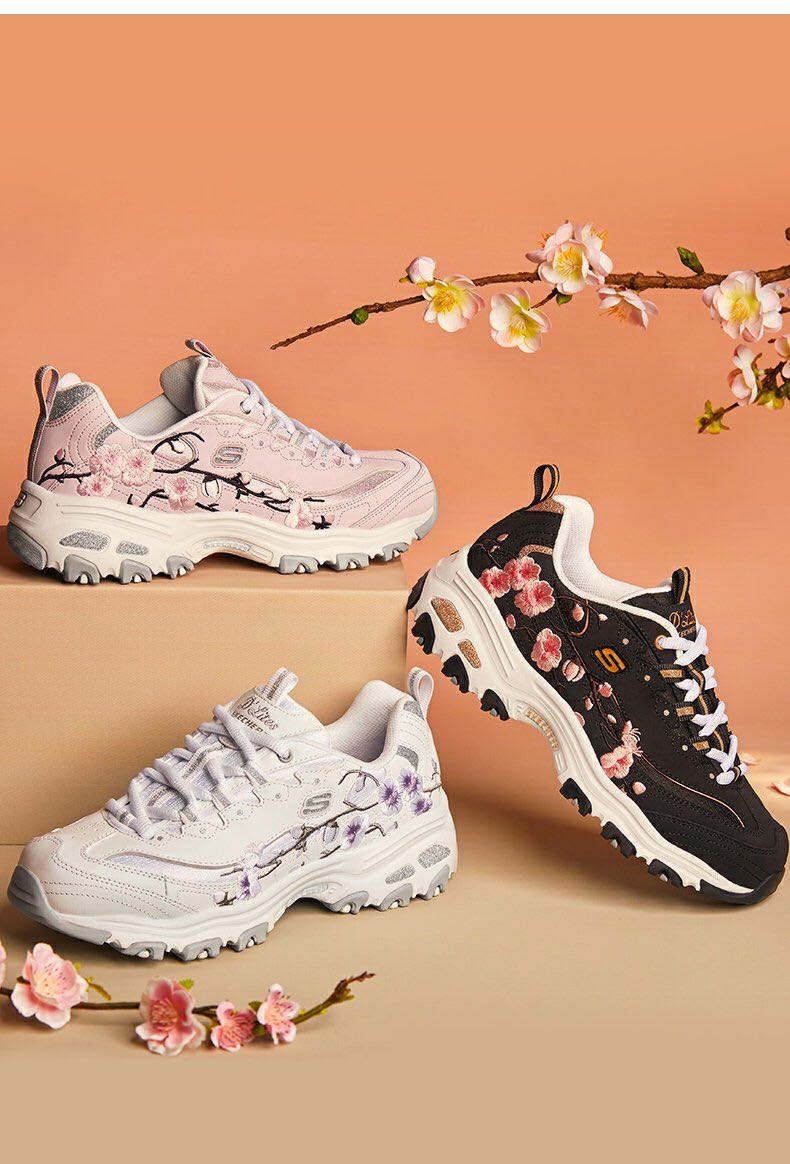 >>Skechers斯凯奇秋季新品女士厚底老爹鞋时尚花卉刺绣运动鞋149239