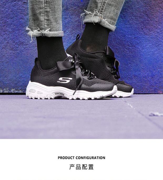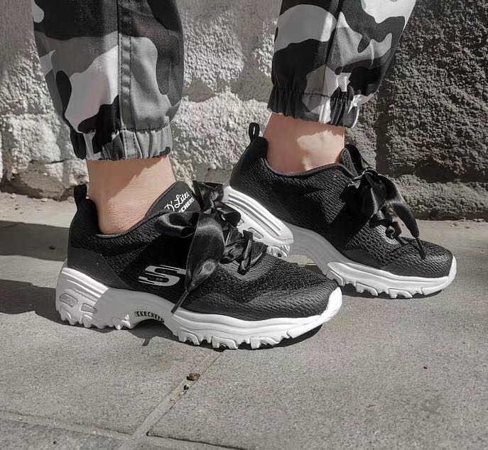 >>Skechers斯凯奇女鞋丝带熊猫鞋厚底增高老爹鞋66666196