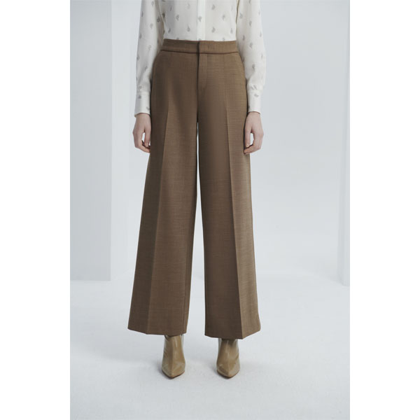 宽腿裤以及压明线设计,包容腿型显腿长;腰部嵌条的细节工艺处理,增加了裤子的层次 感。
