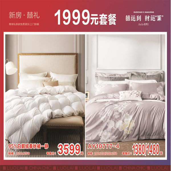 罗莱95白鹅绒春秋被1999套餐
