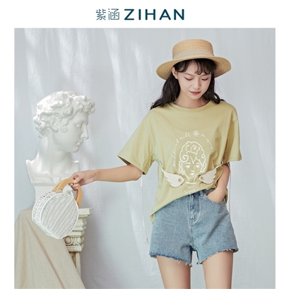 >>紫涵 陶尔米纳の街角 宽松纯棉森女甜美潮T