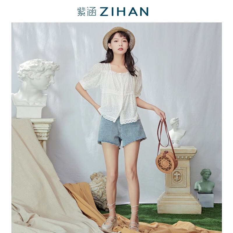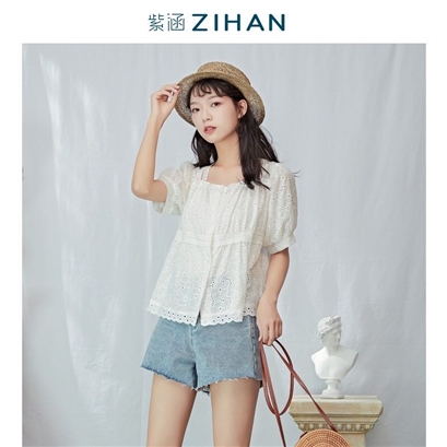 >>紫涵 陶尔米纳の街角 锁骨方领设计感小众复古衬衫