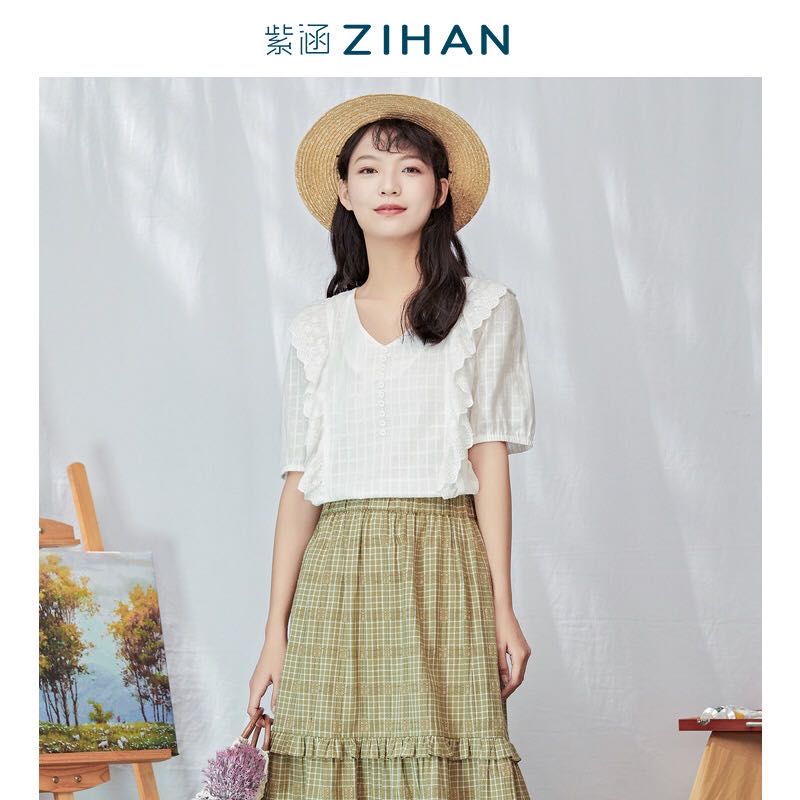 >>紫涵 塞纳马恩de画廊 超仙时尚少女风格子衬衫