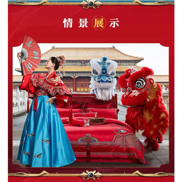 >>罗莱家纺喜庆被套结婚双人十件套 喜狮到*事事如意
