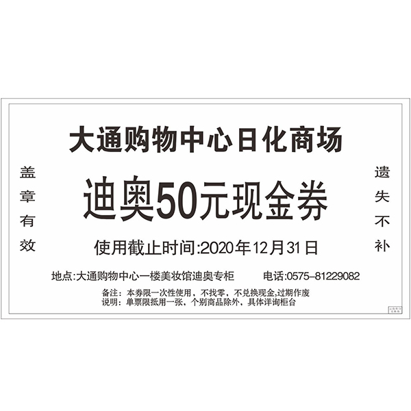 迪奥50元现金券