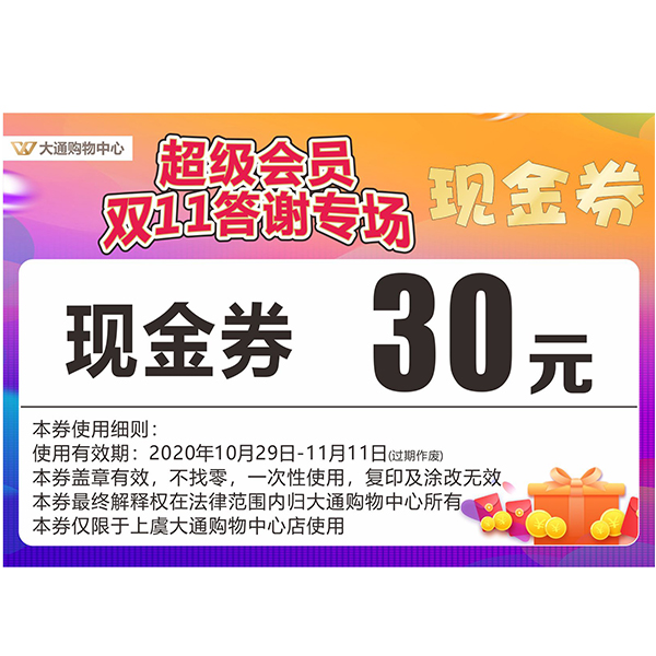 30元大通购物中心现金券
