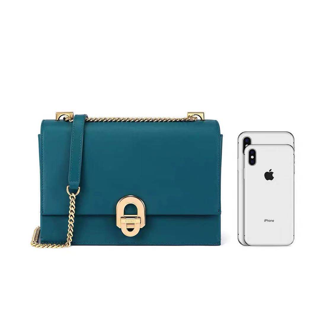迪桑娜真皮女包2020冬季新款牛皮单肩包时尚斜挎链条小方包潮
