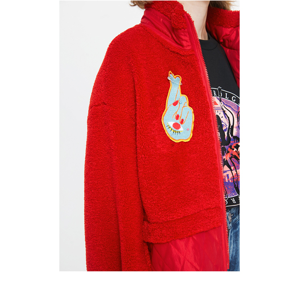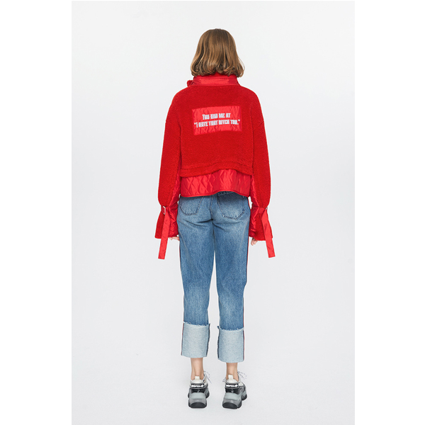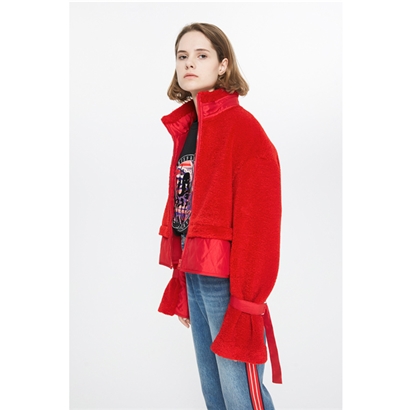 >>玛丝菲尔素圣诞红短款拉链棉服