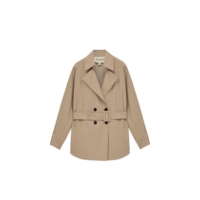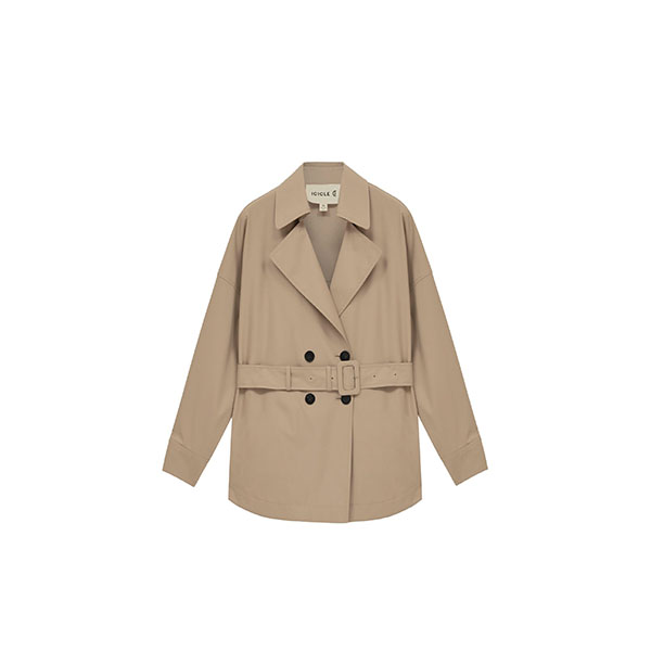淑女装>>ICICLE之禾女装21春夏新款薄丝毛精纺色织廓形短风衣