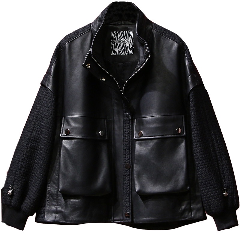 >>太平鸟2021春装新品酷美风绵羊皮革外套