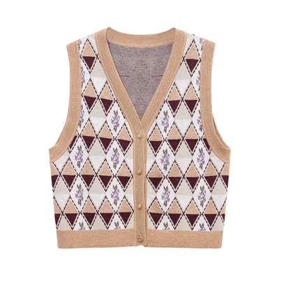 >>太平鸟2020冬复古提花背心