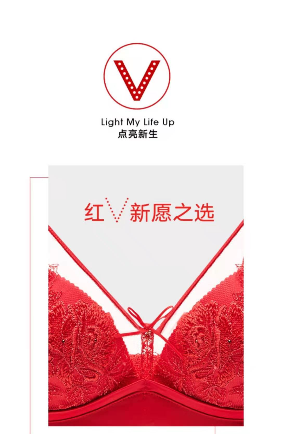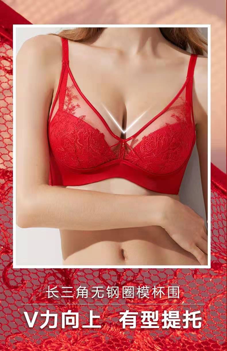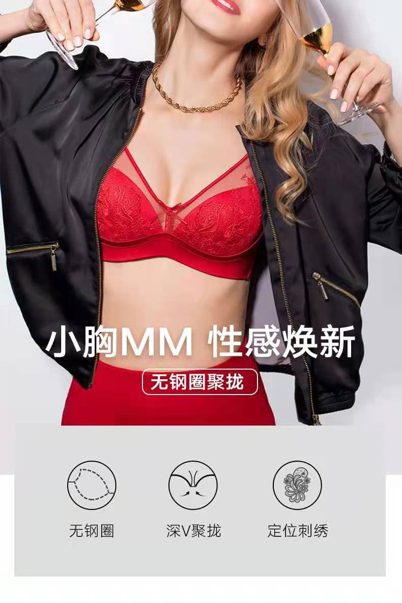宋茜同款曼妮芬无钢圈减压红V舒适聚拢文胸中国红本命年内衣红品