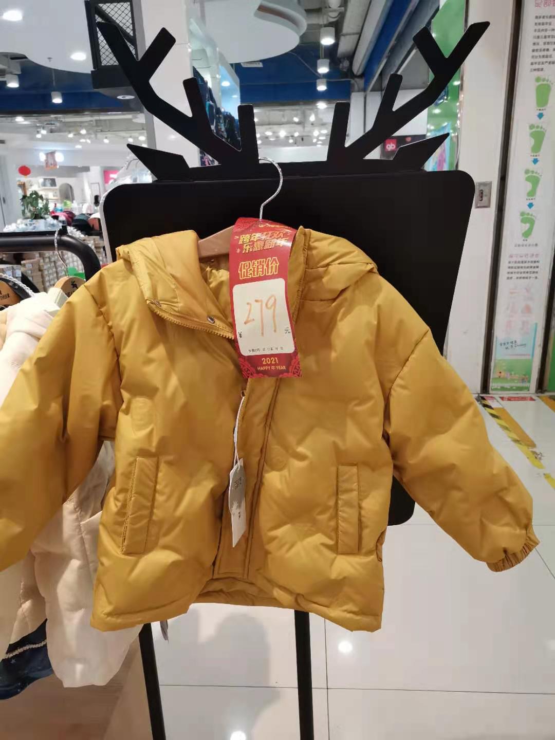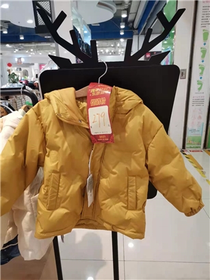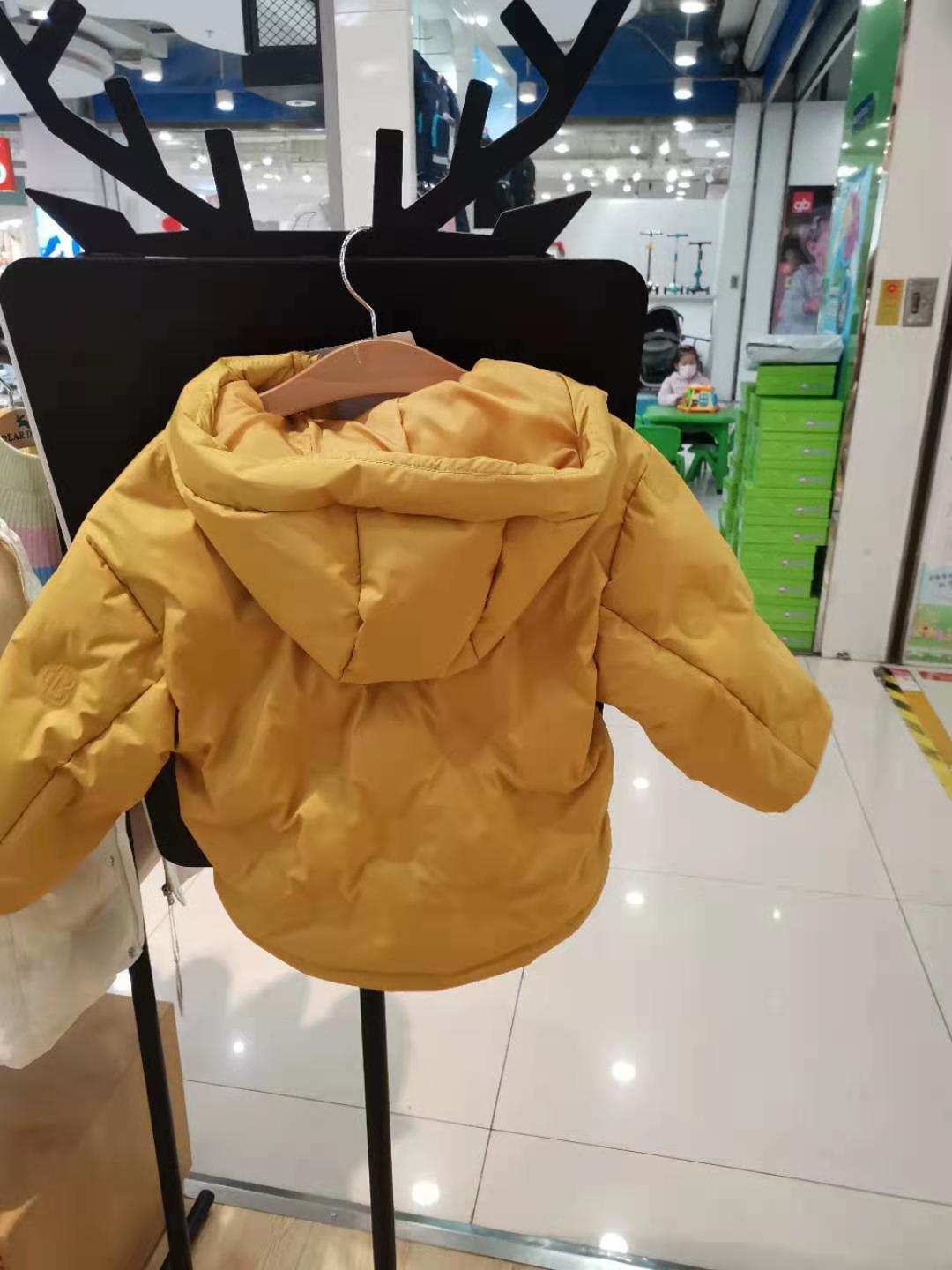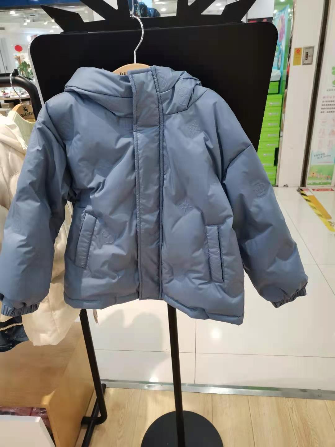 此款羽绒服男女童都可以穿,有黄色和蓝色两种颜色,尺码110-160