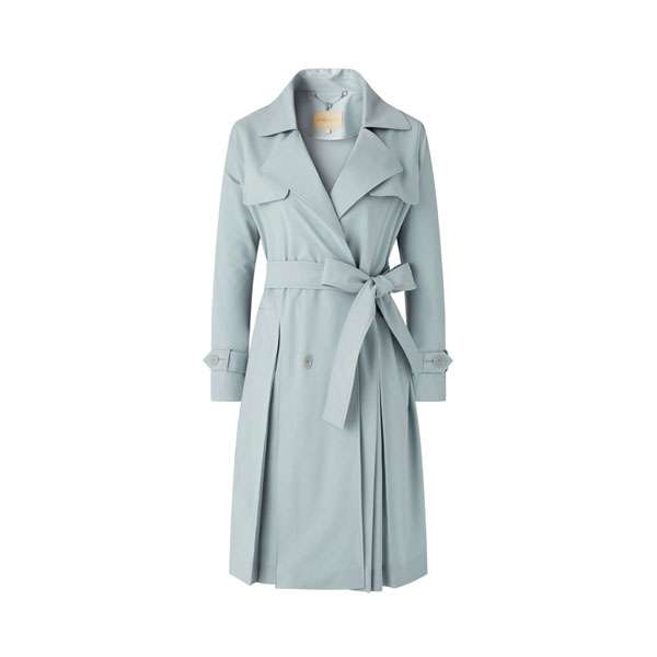 连肩袖;双侧挡风片;袖袢;下摆内褶;无里设计;从自然中提取的清水绿,婀娜 清雅,素雅自然,烘托温婉静美女性气质,无里设计,轻盈灵活,随时随地 利落洒脱。