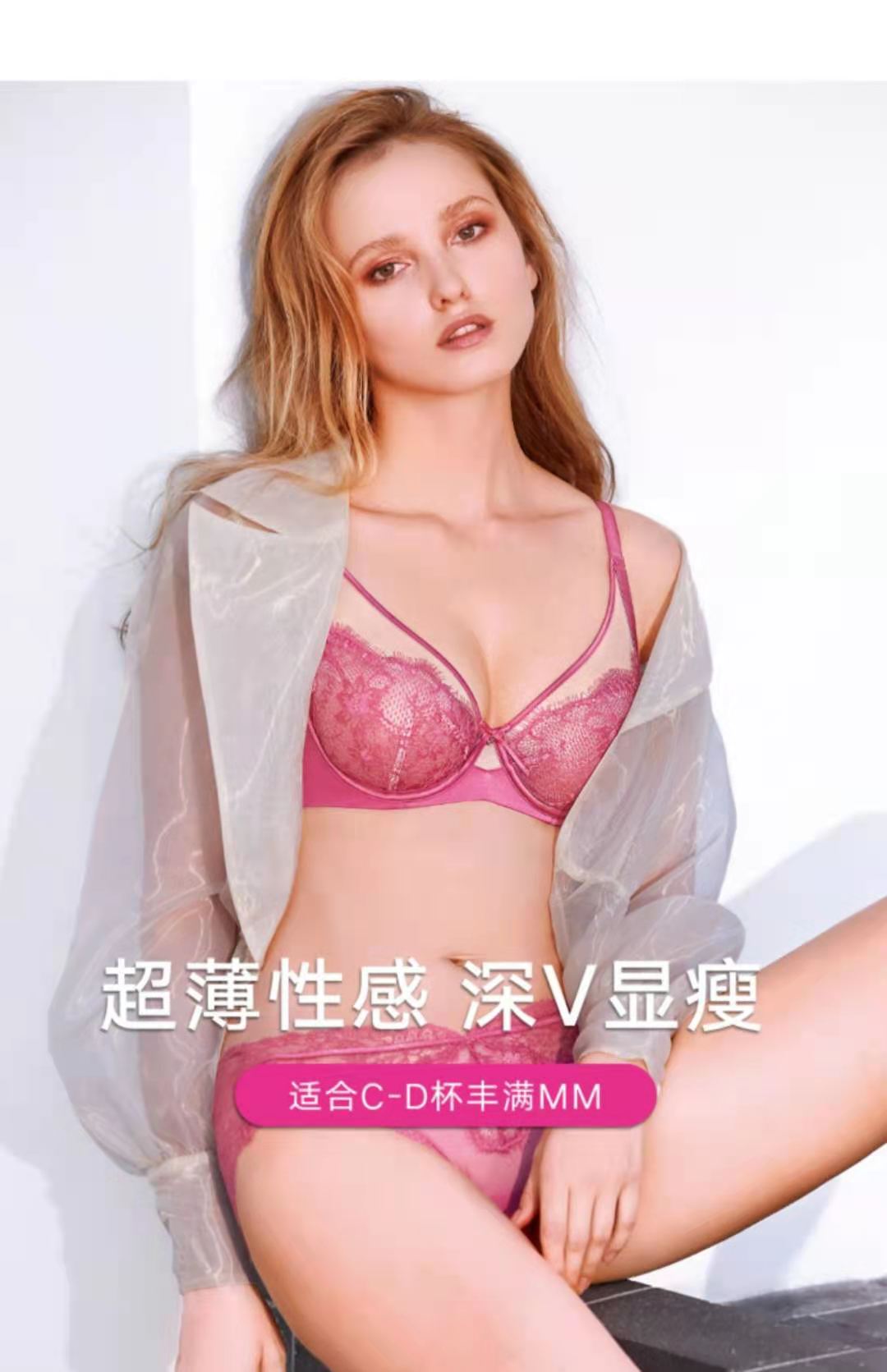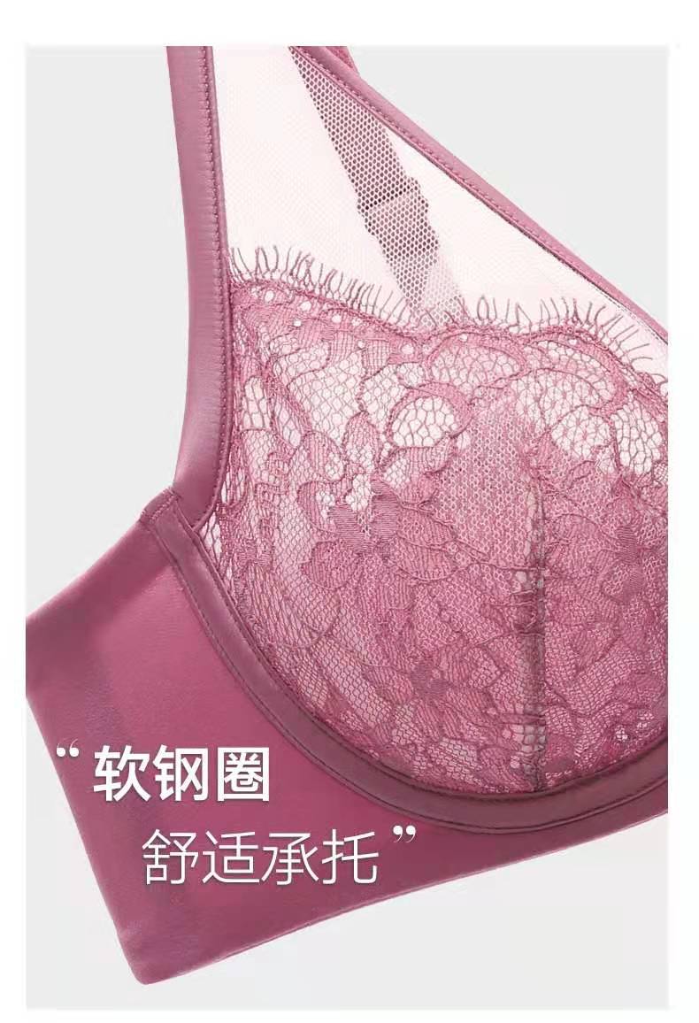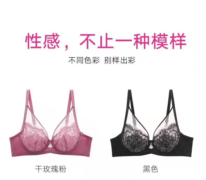 曼妮芬性感文胸轻薄透气睫毛蕾丝长三角U比单层围软钢圈20840508