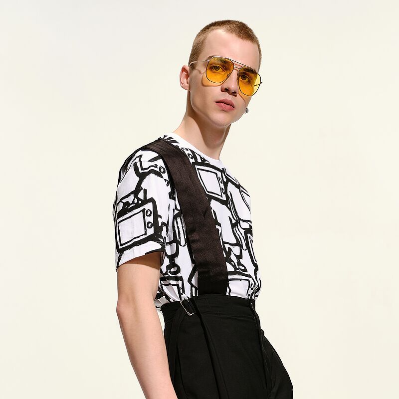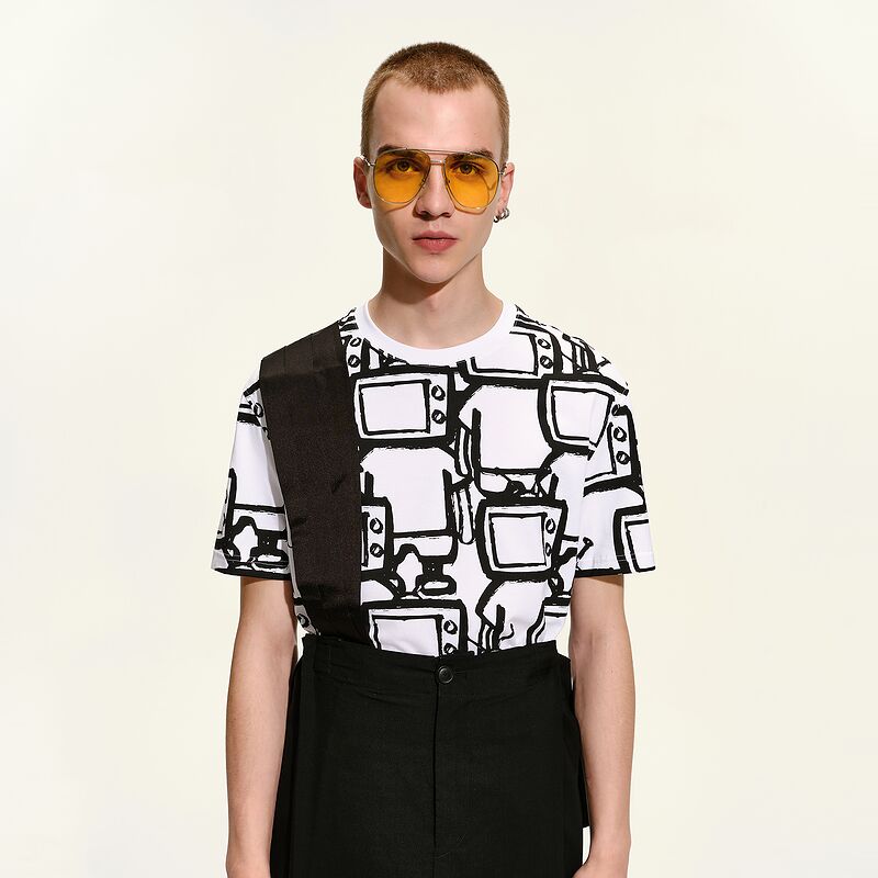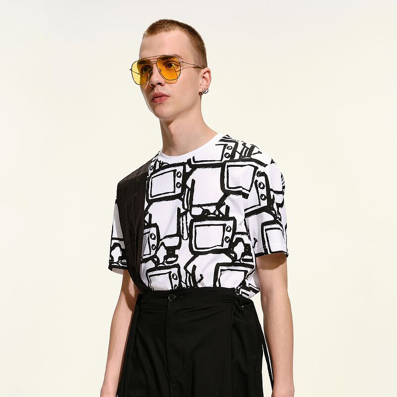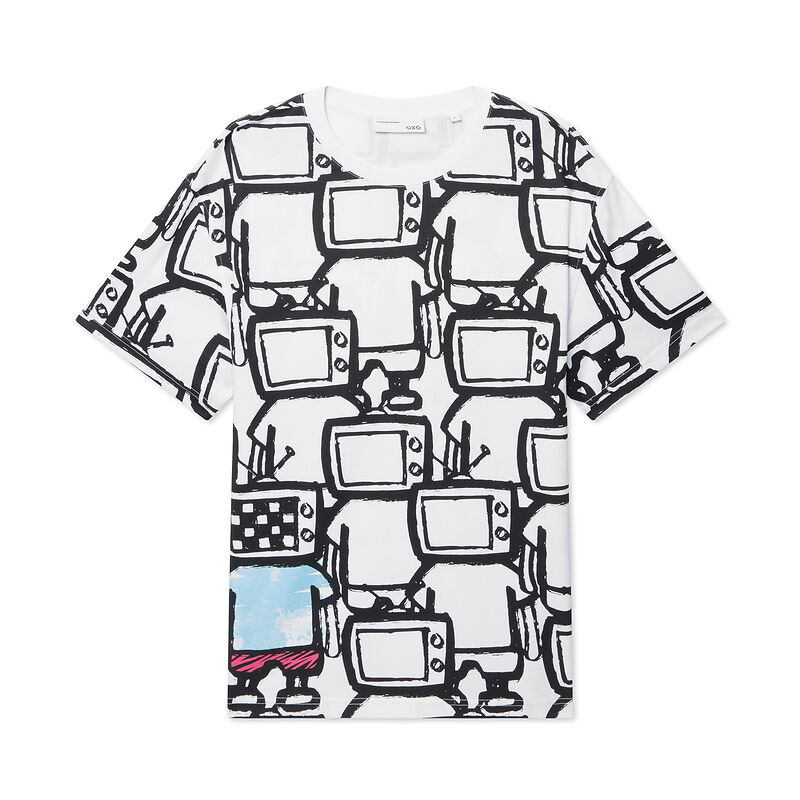 GXG2021年春季商城同款白色圆领短袖T恤男涂鸦满印上衣T恤