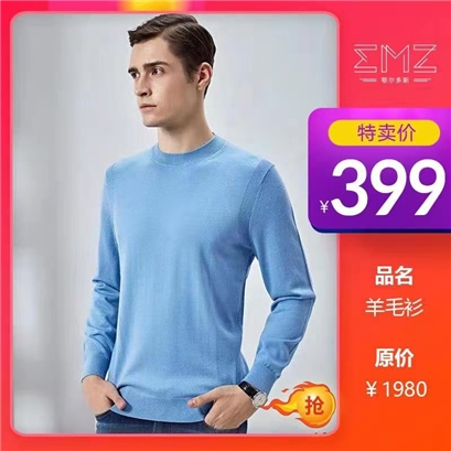 EMZ 鄂尔多斯羊毛衫,100%绵羊毛,手感细腻,适合贴身穿着