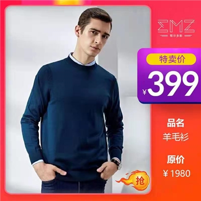 EMZ 鄂尔多斯羊毛衫,100%绵羊毛,手感细腻,经典大气