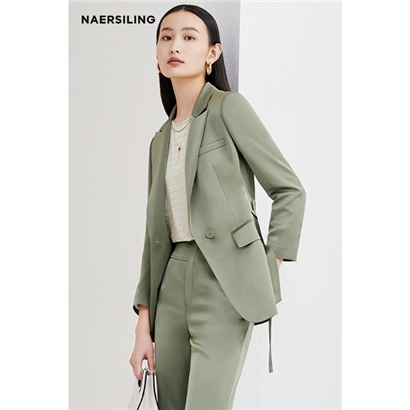 睡莲叶绿套装,充满了大自然的气息,又能轻松衬托各种肤色;西装外套不对称腰带 设计,打破了传统西装腰带的硬朗与拘谨,给人营造一种放松,时尚的既视感;环保的醋 酸锻面料,光滑,细腻,品质;整套适合您上班穿着,彰显您利落,雅致的一面.。