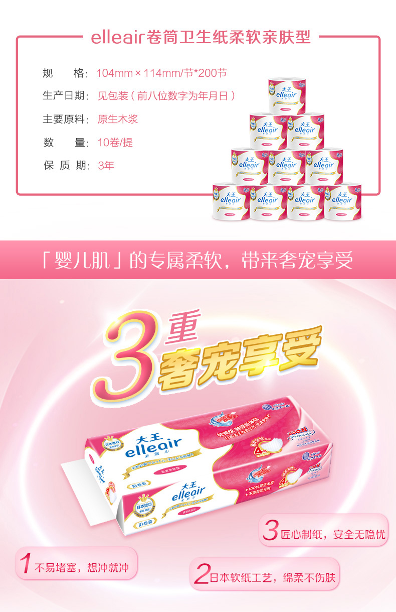 大王elleair卷筒卫生纸柔软亲肤(服务台自提商品)