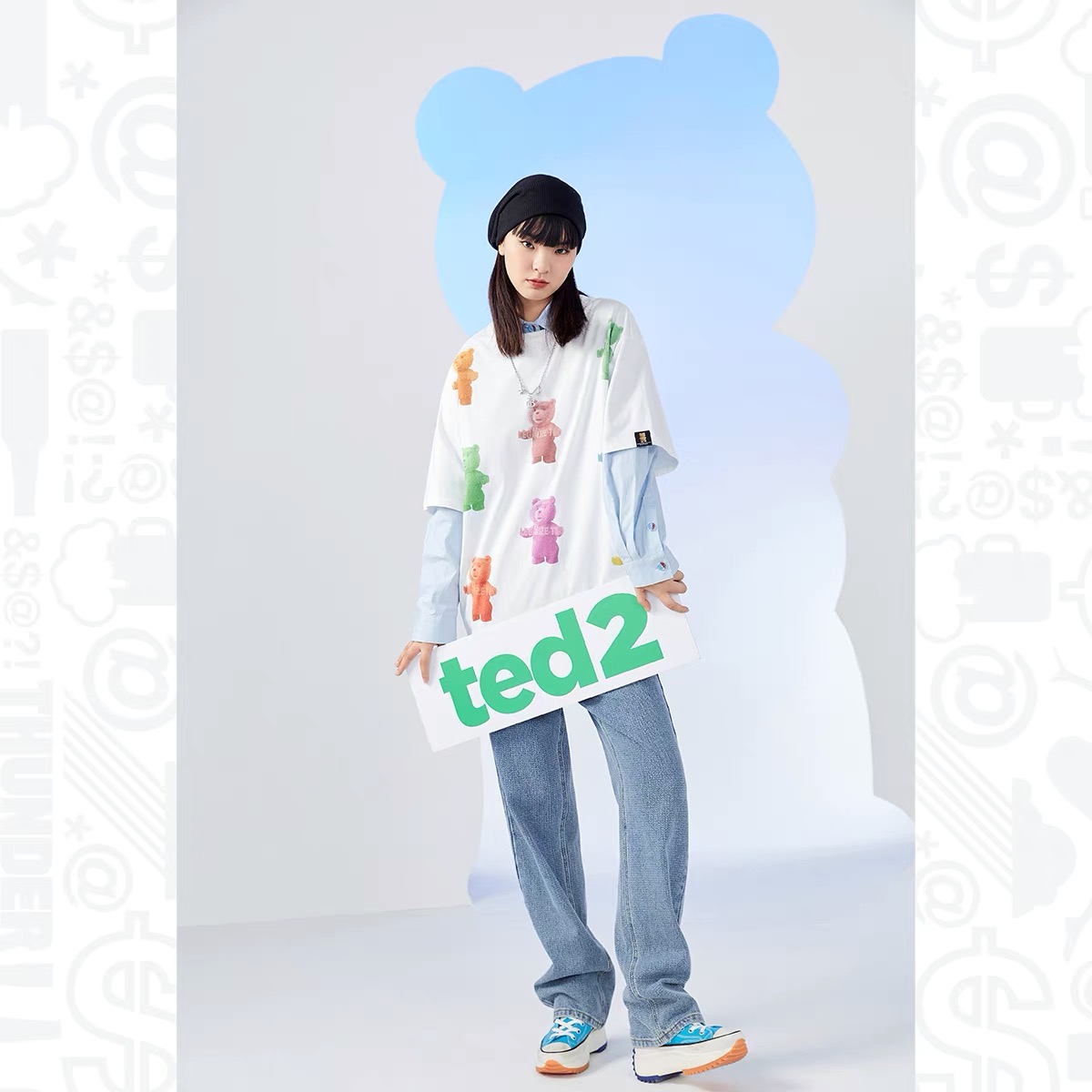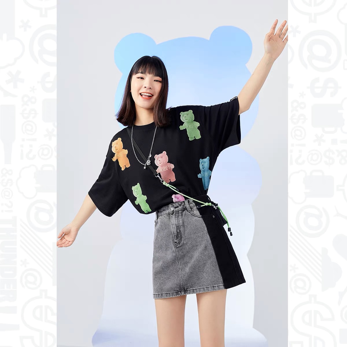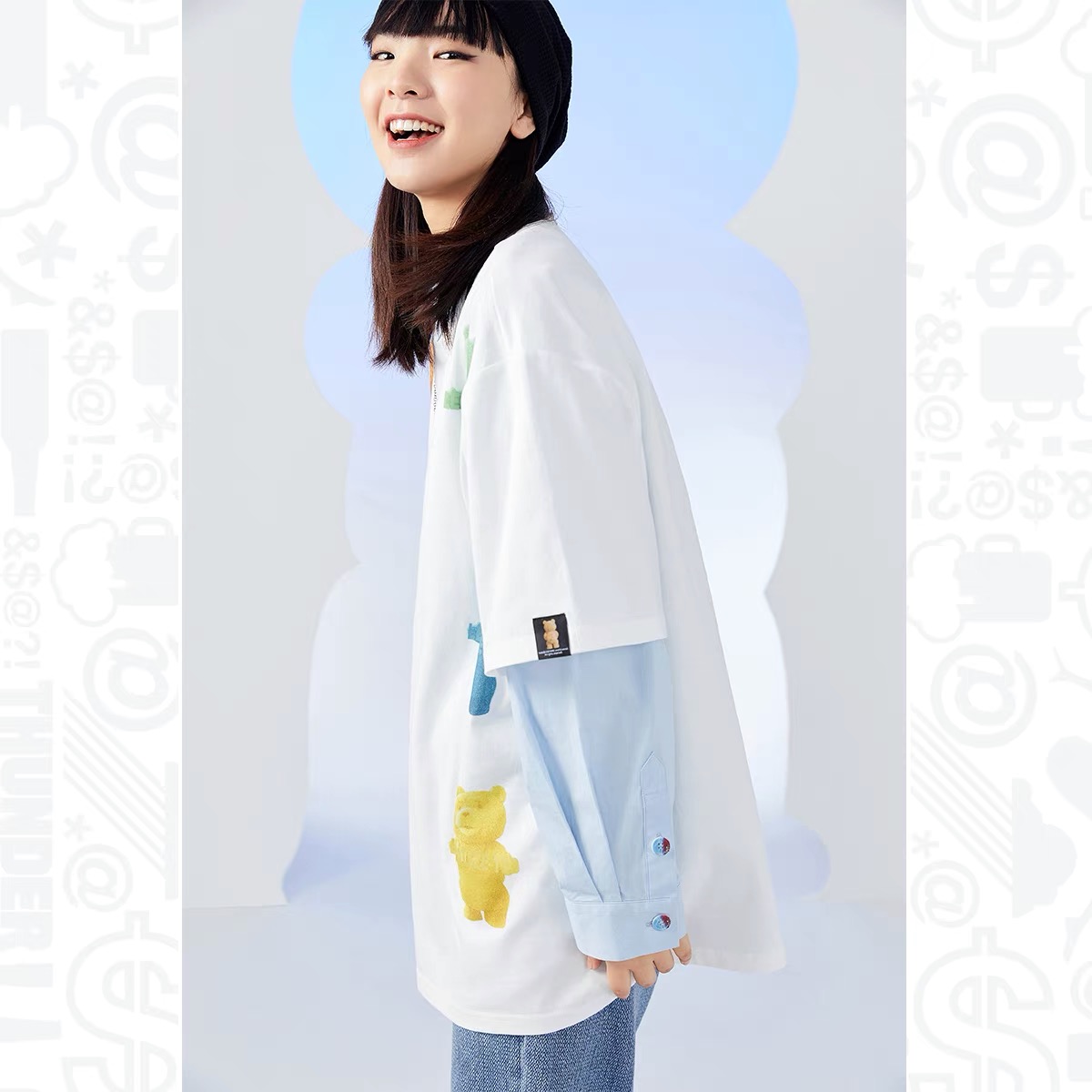 少女装>>太平鸟贱熊T 恤女2021年春季新款泰迪熊印花宽松T恤