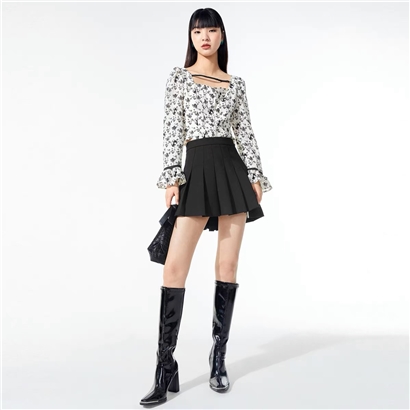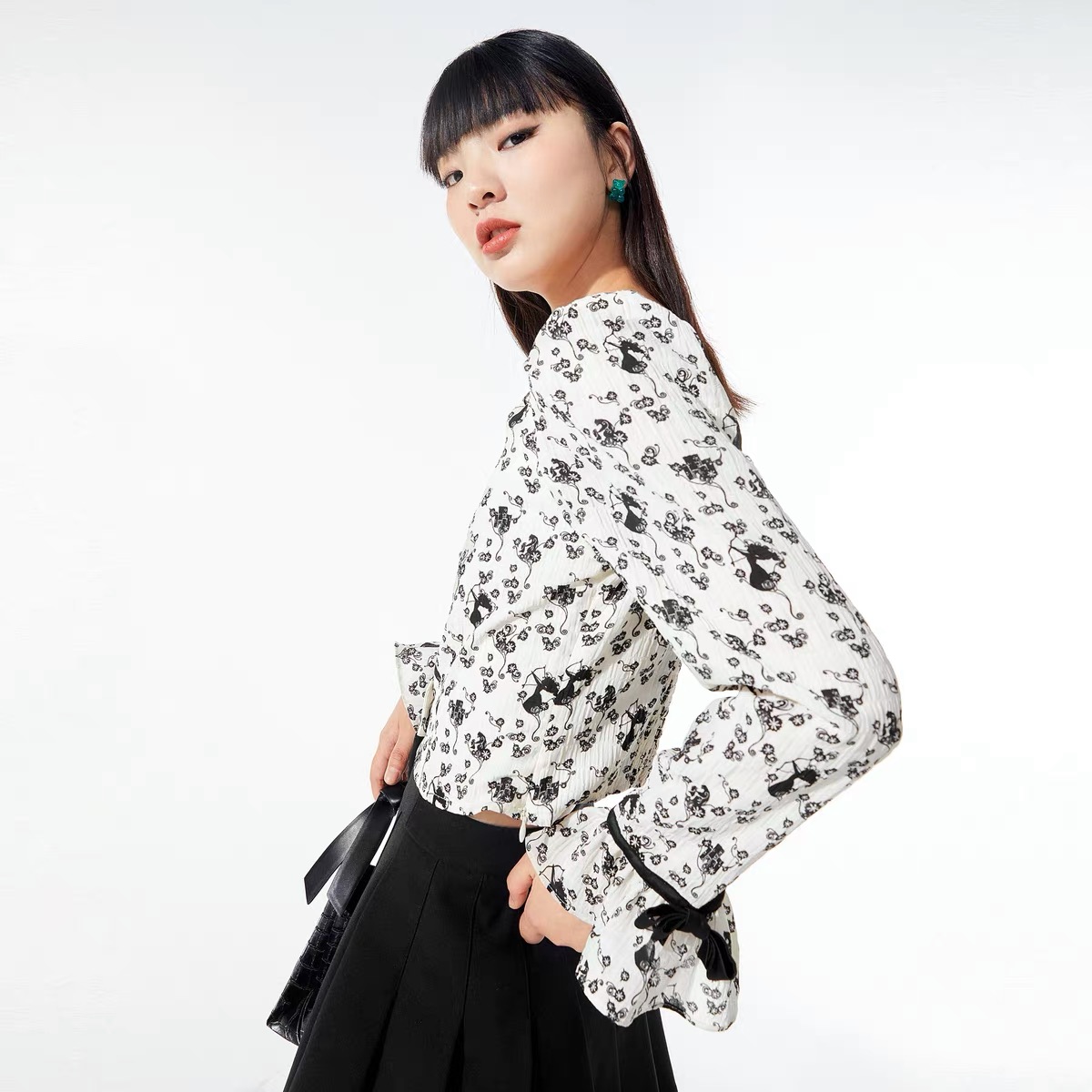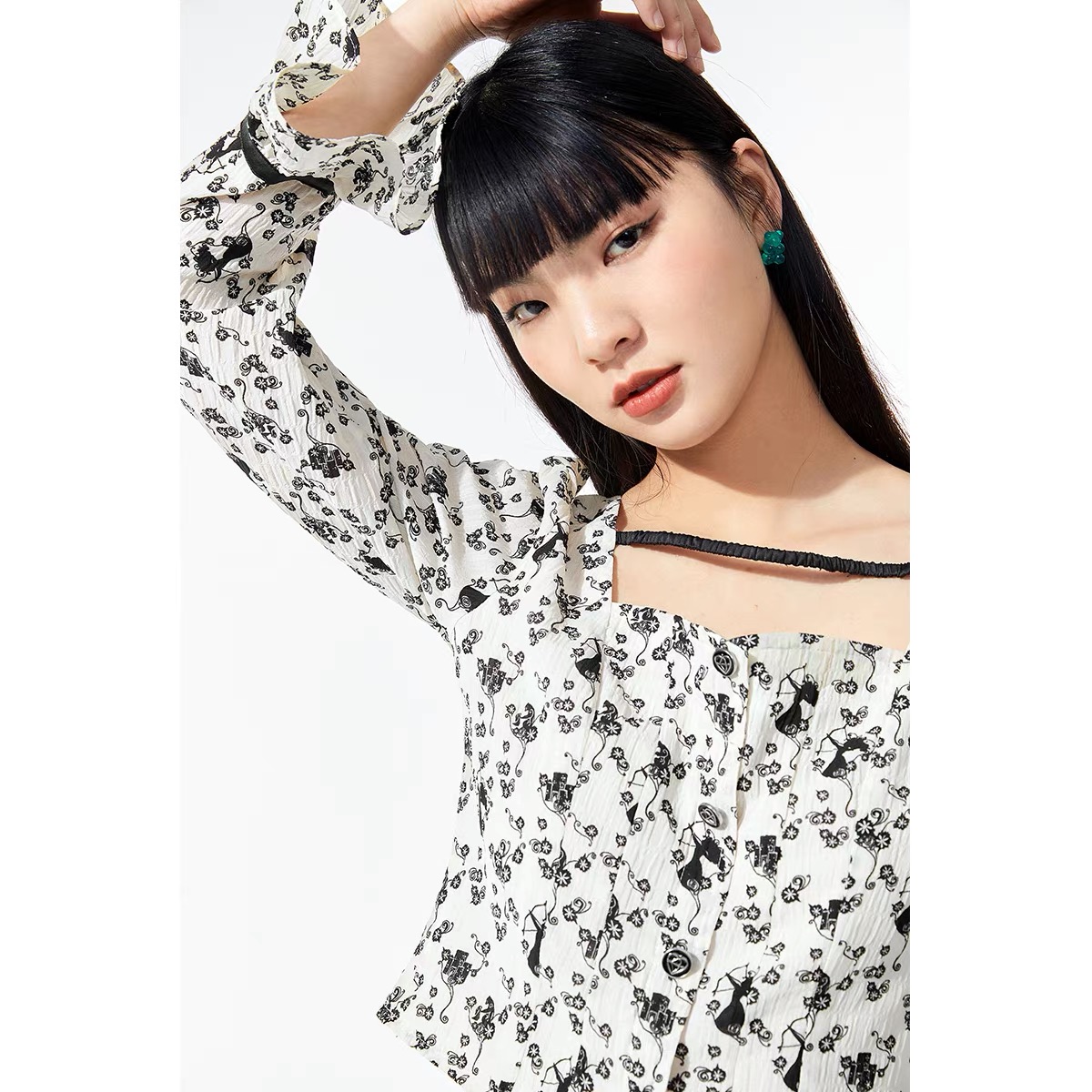 >>太平鸟2021年新款夏古碎花雪纺衬衫