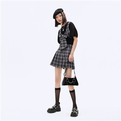 >>太平鸟时尚2021年春季新款蝴蝶结两件式连衣裙