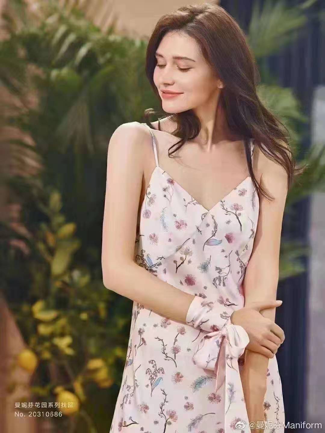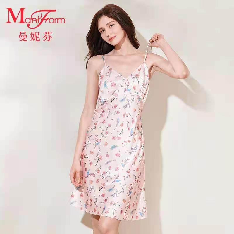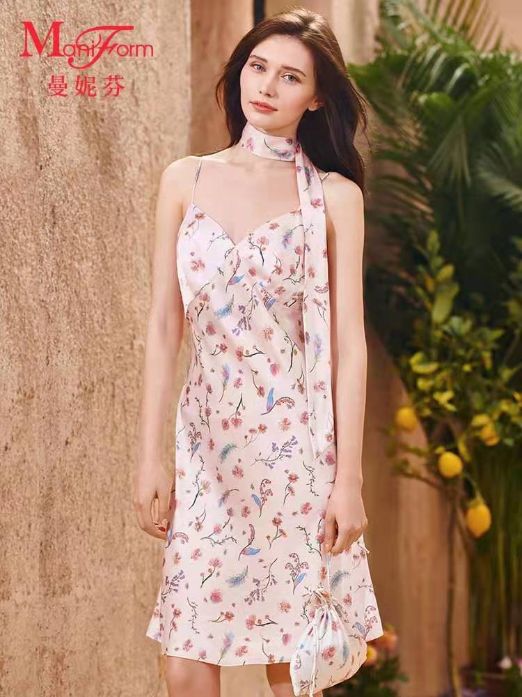 曼妮芬*Iracema 跨界联名系列V领吊裙仿真丝性感甜美睡裙睡衣家居