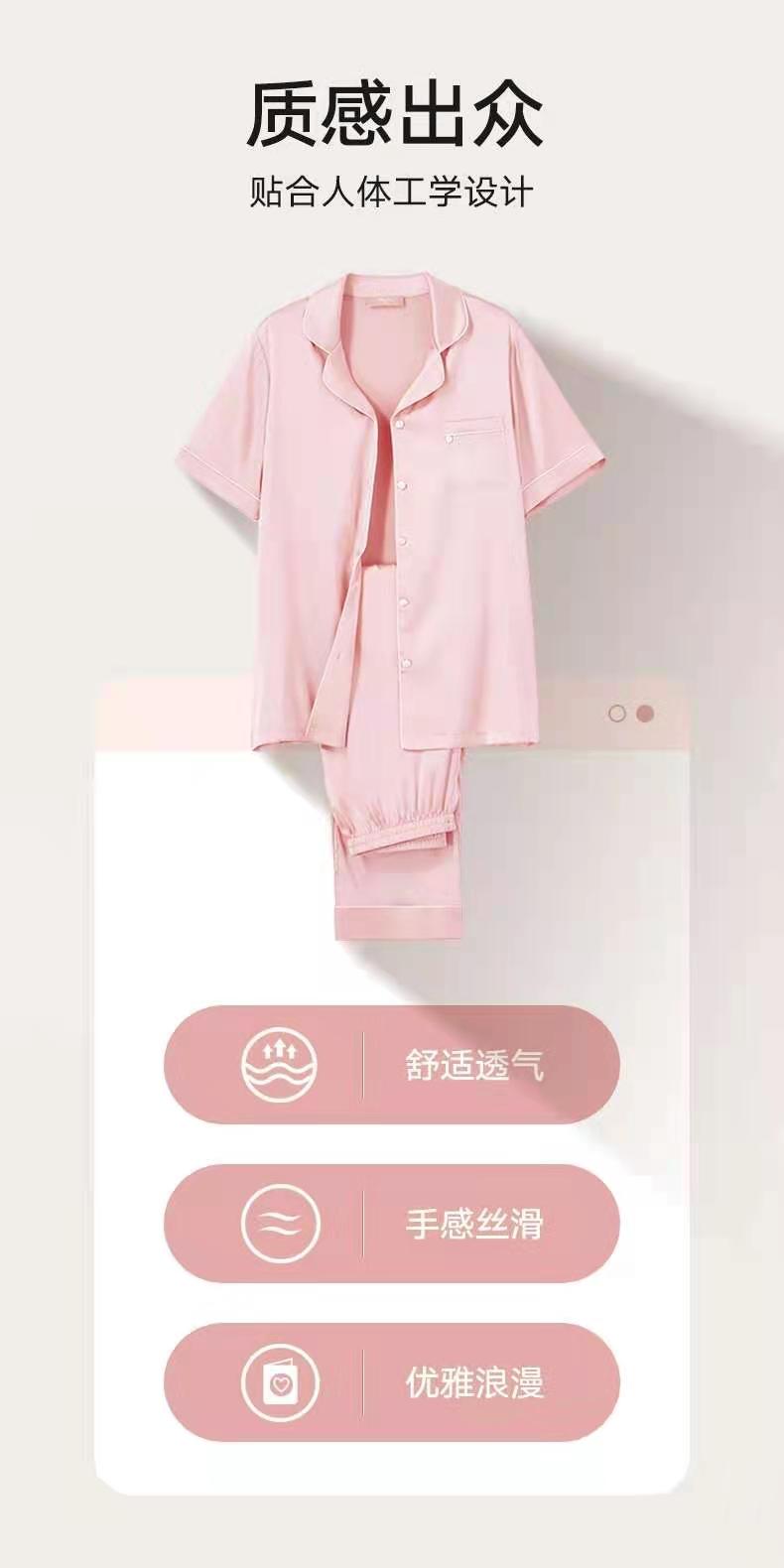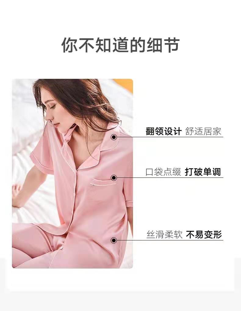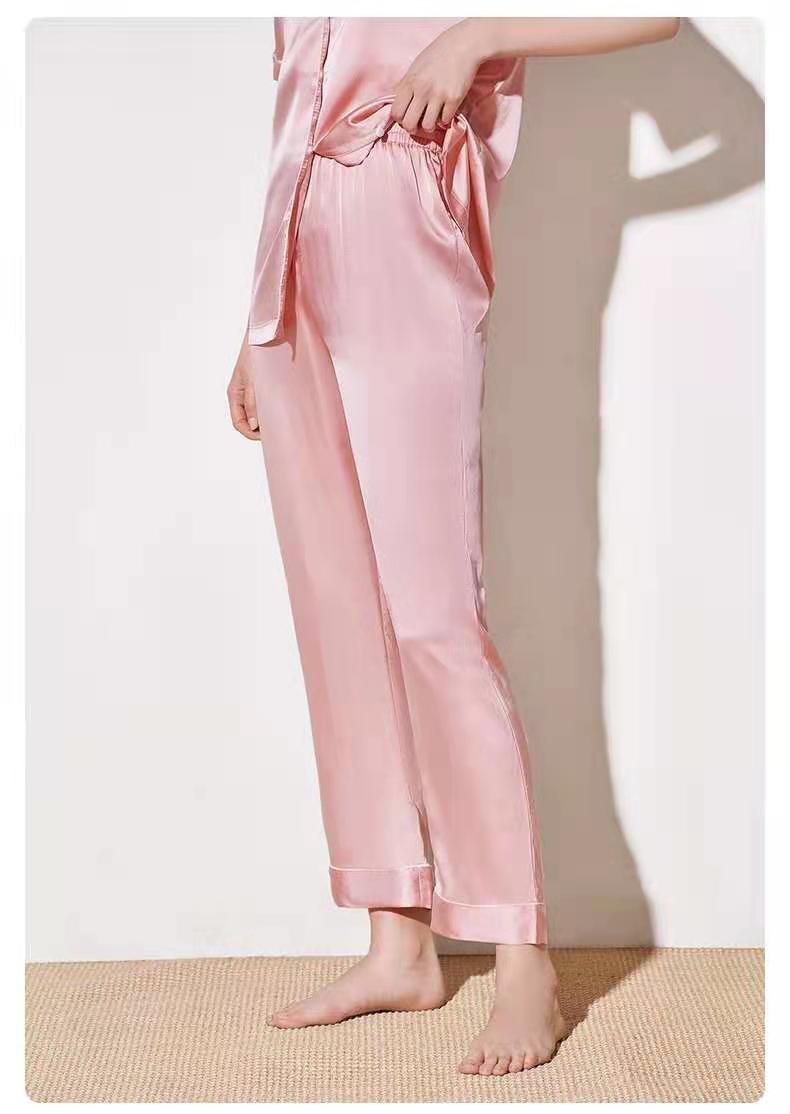 曼妮芬翻领短袖长裤套装睡衣女优雅简约家居服起居服
