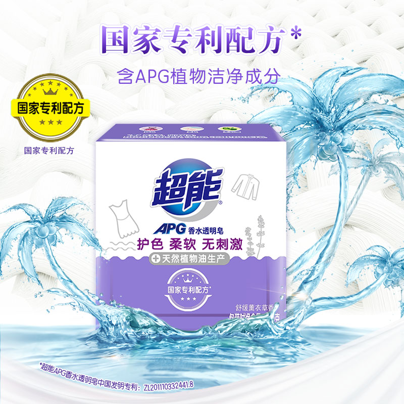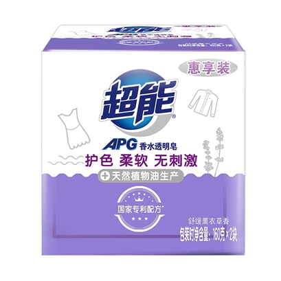 家清纸品>>超能APG香水透明皂-舒缓薰衣草160g*2(服务台自提商品)