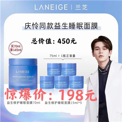 兰芝益生睡眠面膜,夜间修护补水,第二天皮肤水润易上妆。