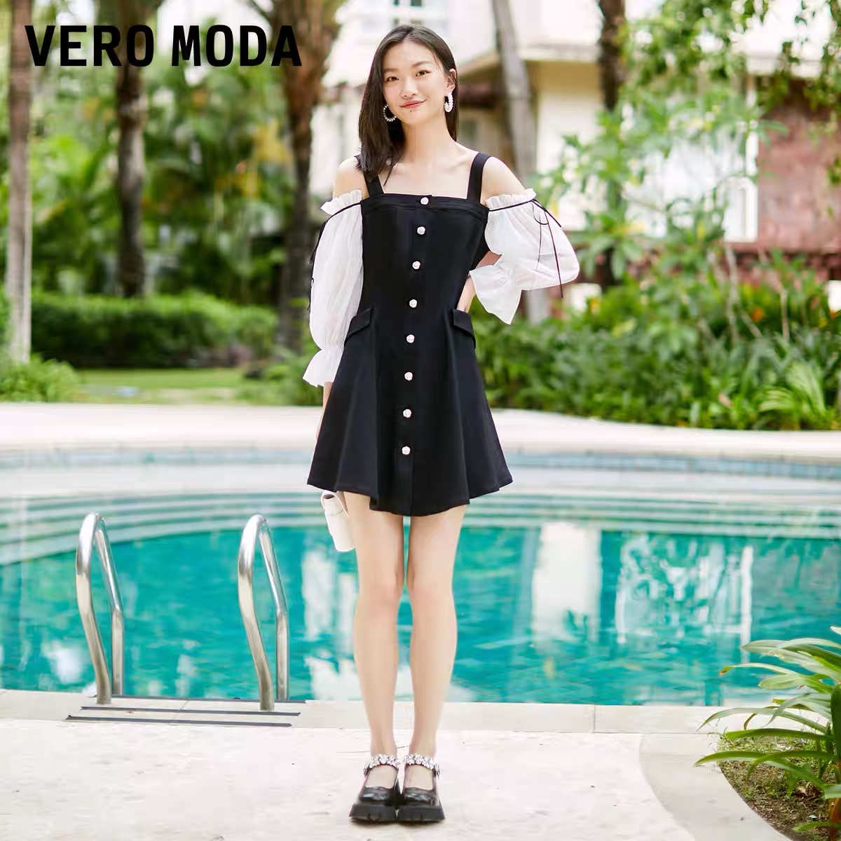 少女装>>Vero Moda2021春夏新款复古浪漫网纱牛仔仙女连衣裙