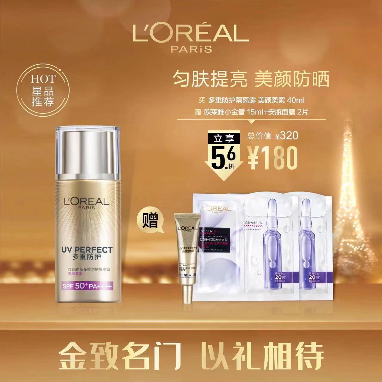护肤>>欧莱雅多重防护隔离露 美颜柔紫30ml(约5.1折)