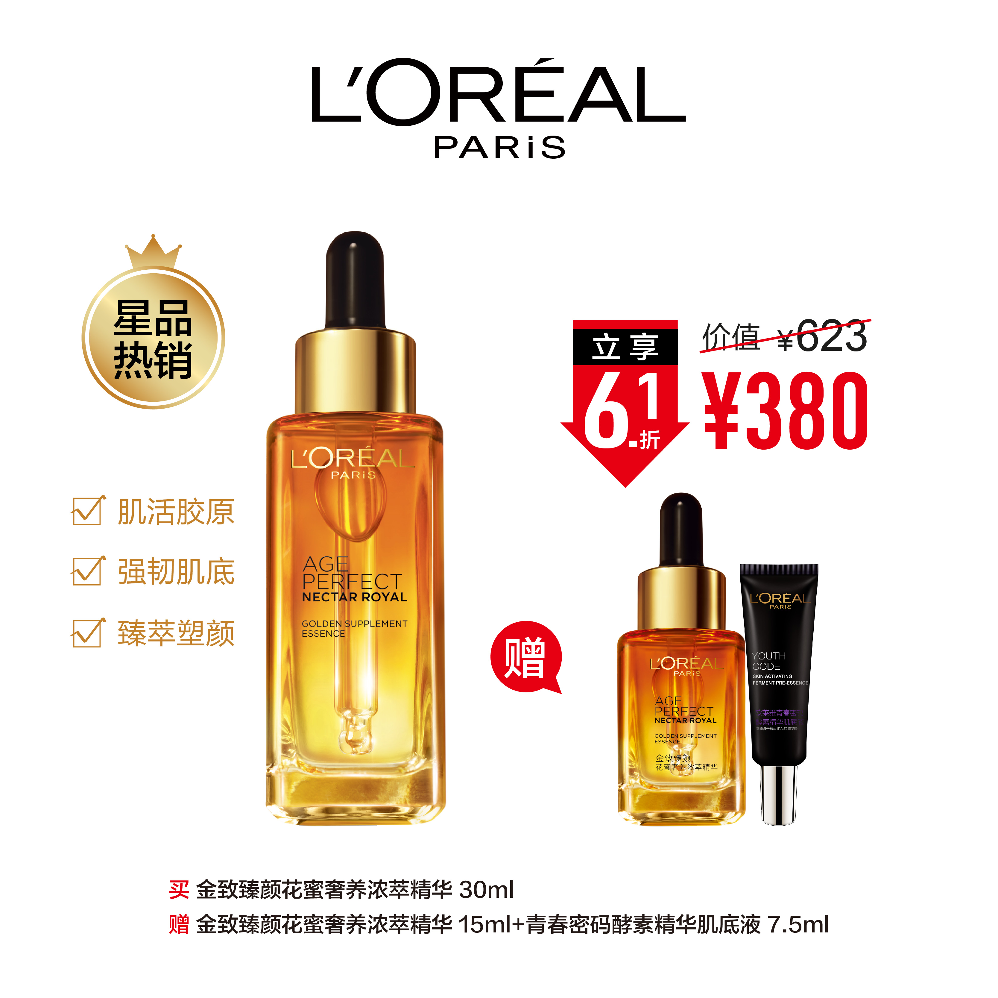 欧莱雅金致臻颜花蜜奢养精华液30ml(约6.1折)