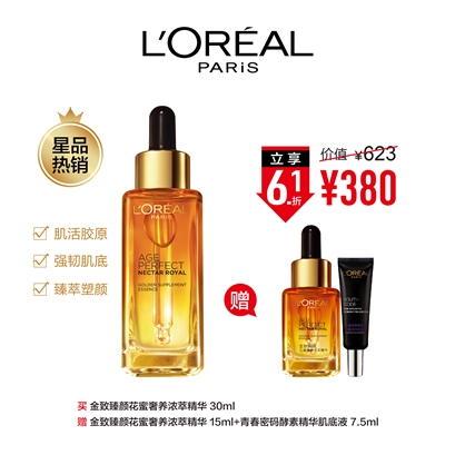 >>欧莱雅金致臻颜花蜜奢养精华液30ml(约6.1折)