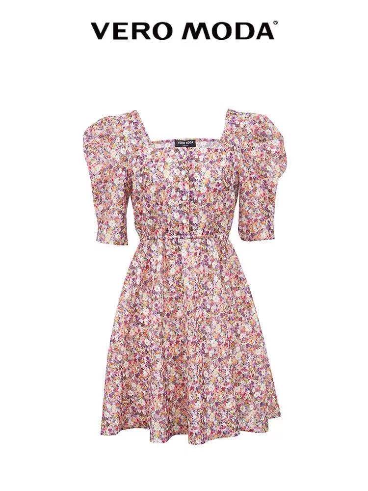 >>VEROMODA2021新品泡泡袖碎花连衣裙
