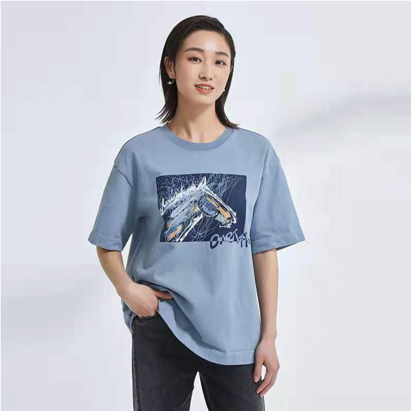 OTT服饰2021夏新品圆领宽松马头印花T恤